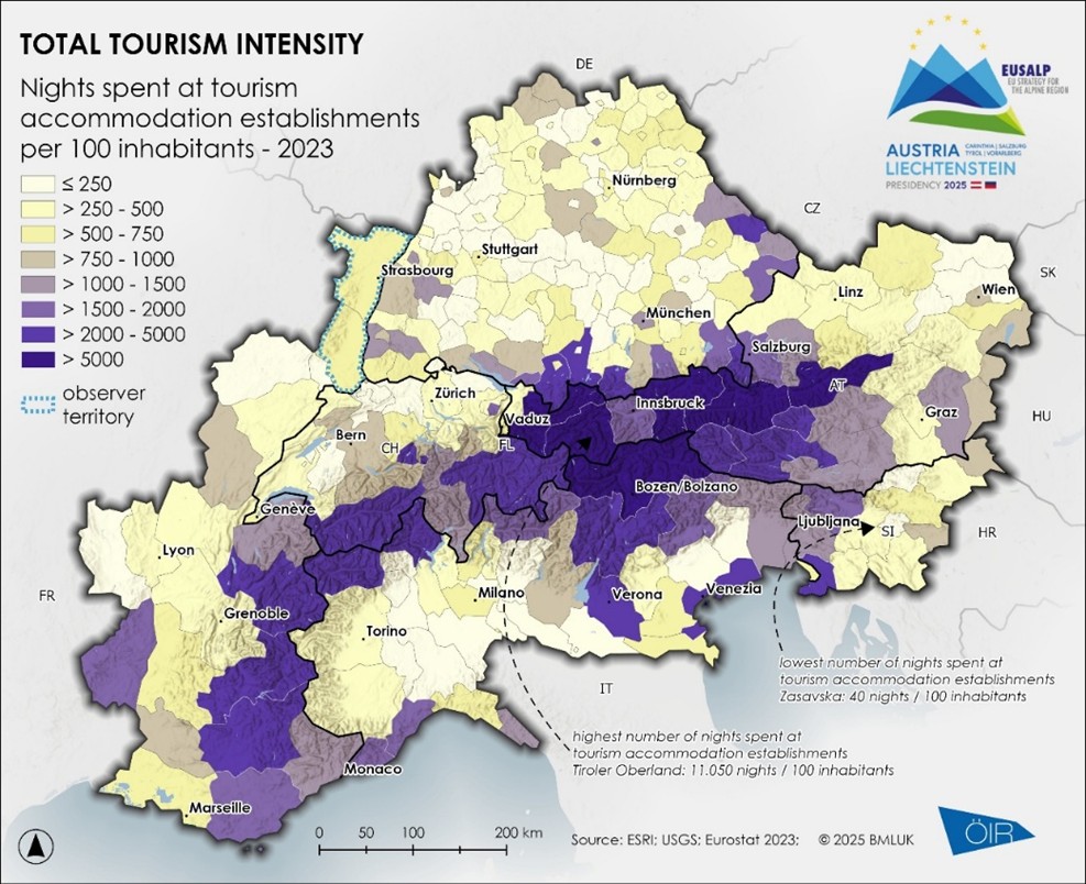 The “State of the Territory Report” systematically analysed territorial development across the Alpine region within the framework of the EU Strategy for the Alpine Region (EUSALP). The aim was to create a common evidence-based knowledge base that highlights spatial challenges, development trends, and functional inter¬relationships in the Alpine region, thereby supporting the strategic further development of EUSALP. The report strengthened the territorial dimension of the macro-regio¬nal strategy and contributed to the ongoing development of an Alpine spatial develop¬ment perspective in the con¬text of the Alpine Convention.
